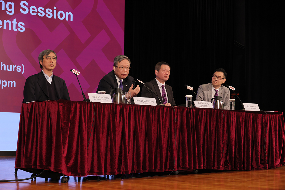 The President's Sharing Session with Students 2024/25 was held on 20 March this year, highlighting the University's commitment to fostering open communication and engagement with the student community. Students actively participated, sharing their perspectives and posing questions directly to the Central Management Team (CMT).